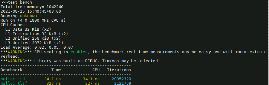 可以看到,tlsf效率还是比标准的malloc差了不少,不过tlsf主要是为了减少内存碎片,且分配性能恒定。