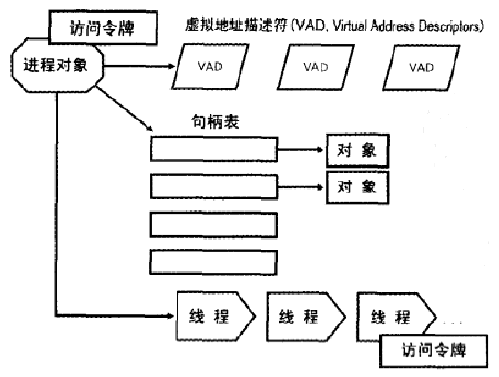 每个进程都要创建一个句柄列表,这些句柄指向各种系统资源,比如信号量,线程,和文件等,进程中的所有线程都可以访问这些资源性)...