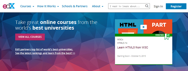 EdX是一家非营利性质的领先的开源在线学习平台,是由哈佛大学和麻省理工在2012 年创办的。在这里,你知道自己会学到前沿技术和理论。现在edX 有 60 家学校。