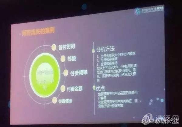 通过数据分析,什么样的用户可能会成为流失型用户,并且通过数据去发现问题,然后去挽留他们。举个例子,比如用户的付费冲动变得弱化了,消费能力变差了,甚至登录程度变低,都会数据运营都应提出警告,这样的用户也许是因为内容不足,也许是因为信心丧失,导致了流失。我们在用户还没有真的流失之前想办法挽留他,比在他流失之后用各种方式召回更容易。另外,可以发现,这些即将流失以及已经流失的用户特征,我们可以做出不同的方案进行补救。