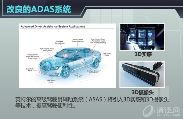 2014年问世的ADAS(高级驾驶员辅助系统)目前已被汽车行业运用,这项系统通过停车辅助、免碰撞、紧急刹车等功能来提升驾乘体验。Rupal Shah称,英特尔正准备让这项系统更进一步,“例如目前正在研究的3D实感技术是一款基于3D摄像头的互动技术,可以进行实时的、生动的面部和肢体动作的识别。通过这种技术,驾驶员可以远程控制一辆车停到应该停的车位中去,也可以对车辆周边环境进行360°无死角的辨别”。此外,3D摄像头还能将手机和汽车联系起来。当驾驶员离开车辆时,可以运用手机,通过3D摄像头看到车外和车内的情况。“如果你觉得有什么东西可能落在车里了,想在车里找一找,摄像头都可以做到”,Rupal Shah介绍道。
