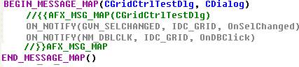 本实例中,在CGridCtrlTestDlg中添加了两个消息映射: