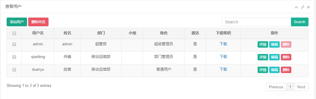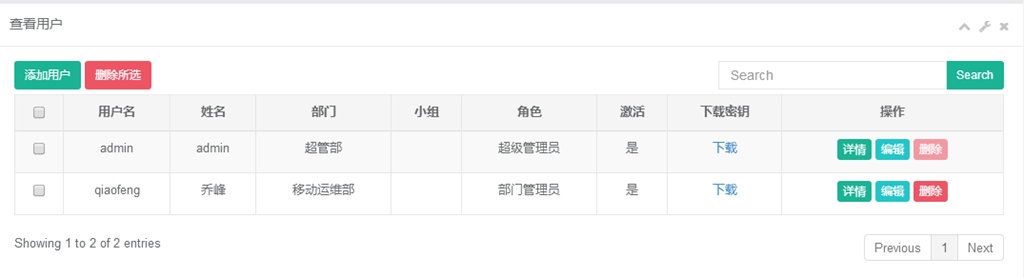 部门管理员相比超级管理员功能要少些,只能负责该部门的主机授权,用户管理,需要说明的是,新建的用户会默认属于本部门,新添加的主机会属于本部门