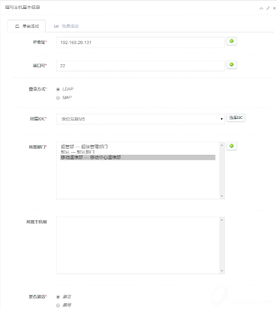 部门:选择服务器输入哪个部门,也相当于把服务器授权给某个部门,将来该部门管理员可以管理该服务器及授权