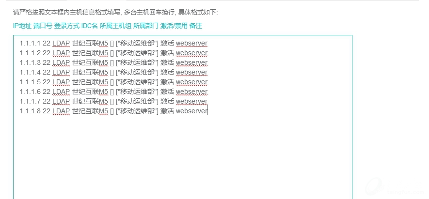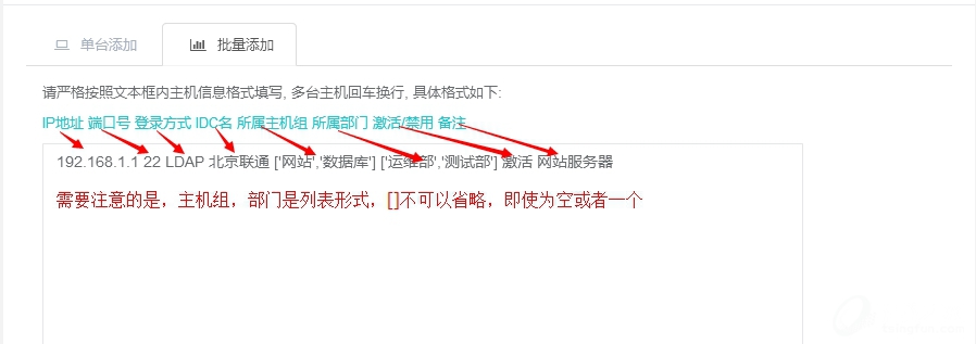 批量添加资产可以按照格式批量添加资产,对应的各个字段有说明,也有实例