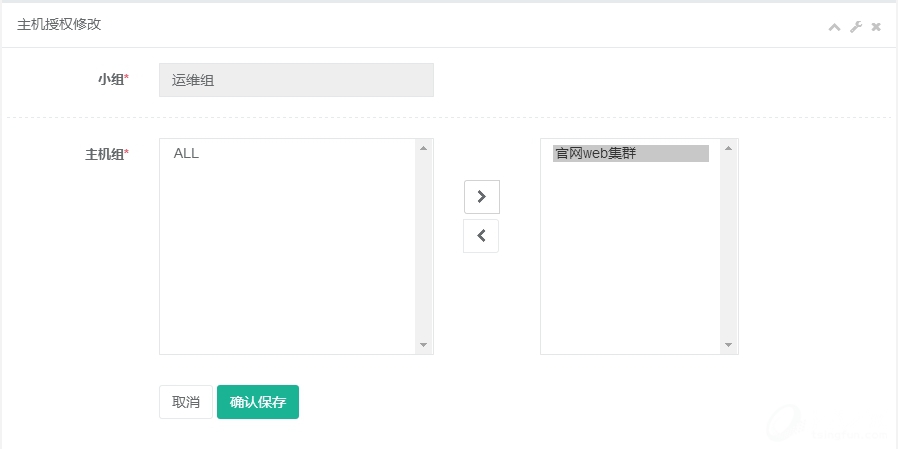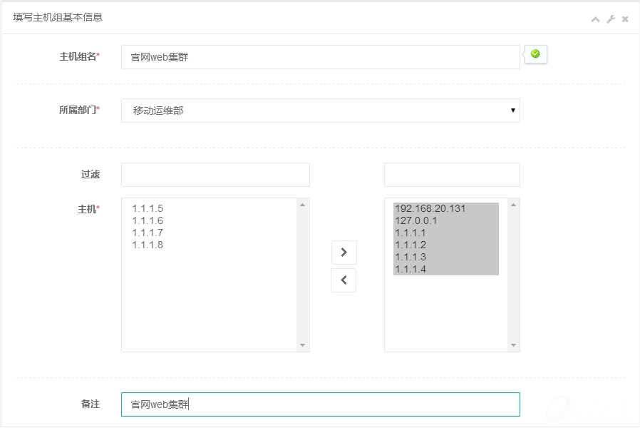 所属主机组:刚开始可不填,当选择主机组后,如果该主机组已授权给用户组,则该主机授权给用户组的各个用户