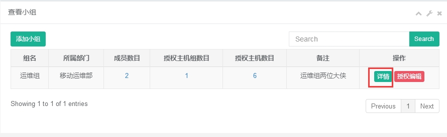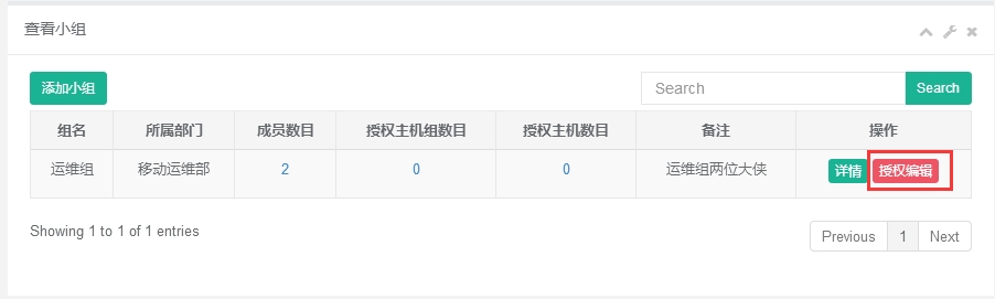 授权管理 -- 小组授权 -- 选择用户组 -- 授权编辑