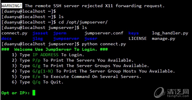 注: jumpserver正常使用会让 connect.py脚本登录自启动,部署文档后面有说明, 下面的操作为试了方便测试