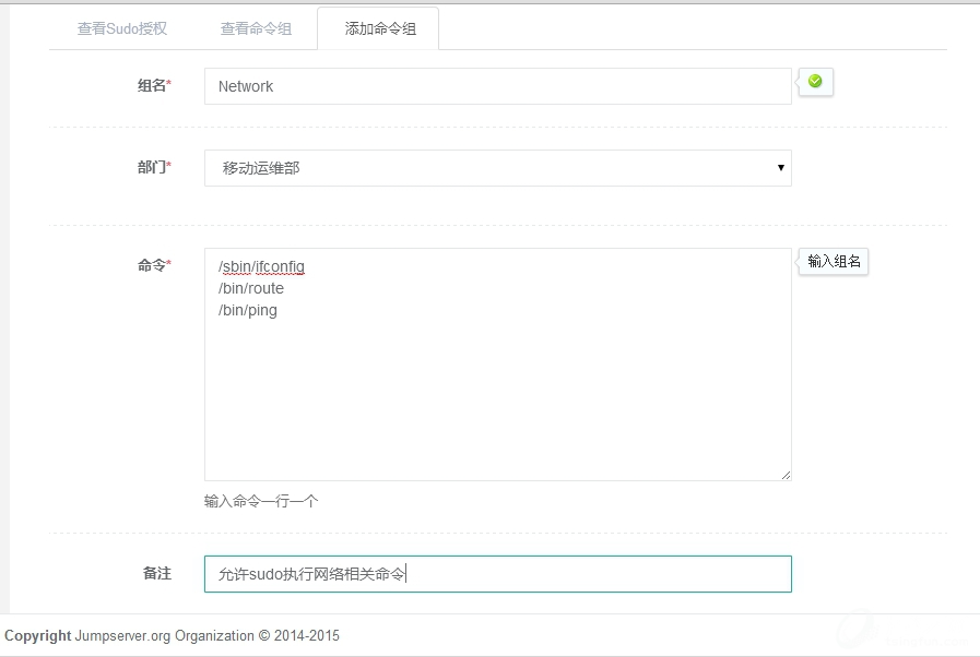2.0.0版本的jumpserver授权主机或者sudo是以组的形式组织的,所以要建立用户组