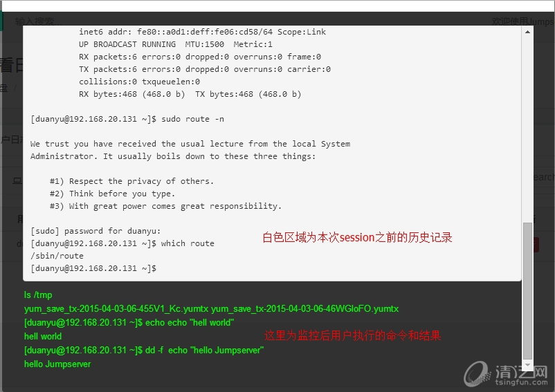 想必刚才的终端你还没用退出,使用jumpserver登录后端主机后,sudo测试