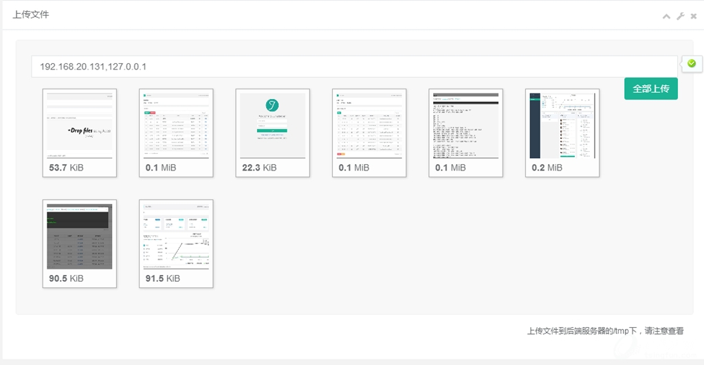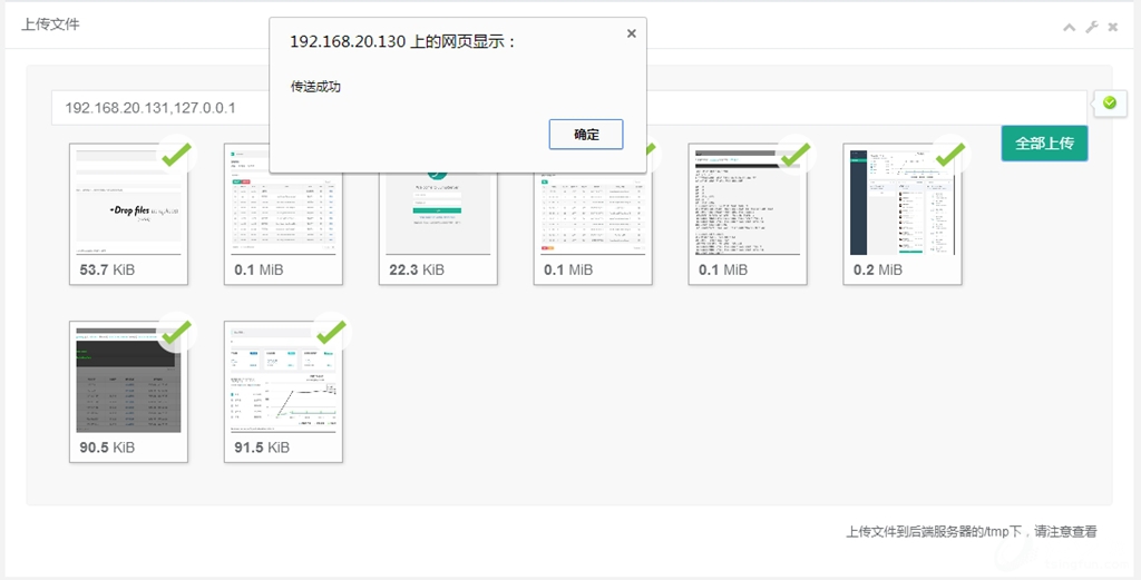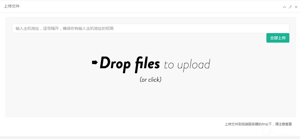 填写ip地址,多个ip逗号隔开,将需要上传的文件或者目录拖拽上去,点击全部上传,上传文件在服务器的/tmp目录下,去看看吧