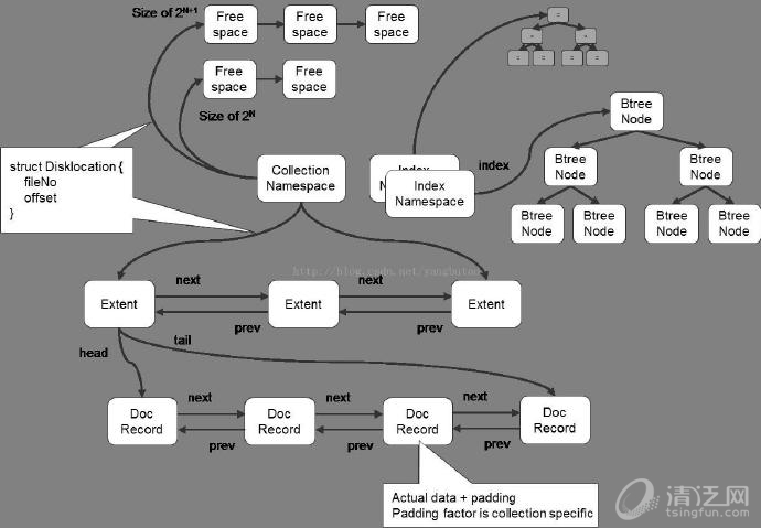 MongoDB在数据存储上按命名空间来划分,一个collection是一个命名空间,一个索引也是一个命名空间。
