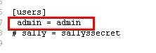 添加用户admin 用 = 分割,左边是用户名,右边是密码(明文)。