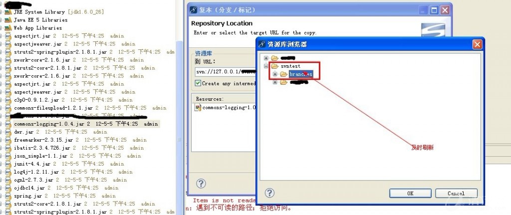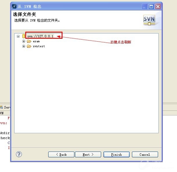 当甲向svn中新添加存储库后,乙想使用插件checkout甲的东东 需要刷新一下才能看到甲新建的存储库。