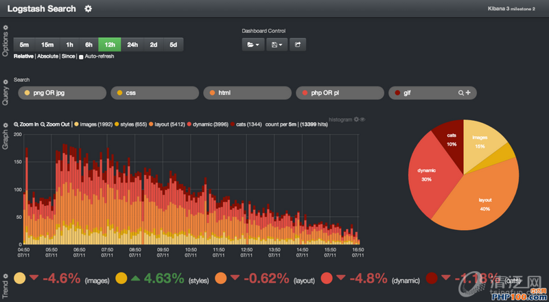 如果你搭建了完整的技术栈,你的老板就可以在图形化界面上按不同的维度去搜索日志了。