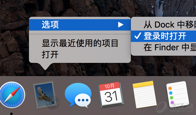 在电脑Dock中, 将鼠标放置在邮件图标上, 右击->选项取消开机登录就好了,如图:同理,其他app取消开机启动也一样。