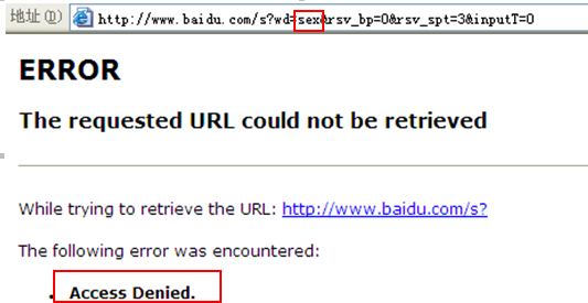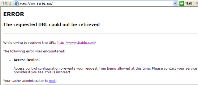 1346387408.908 1 192.168.2.22 TCP_DENIED/403 1415 GET http://www.baidu.com/ - NONE/- text/html