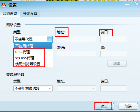 正常情况下,qq工具只要设置代理方式中的任意一种也可登陆qq