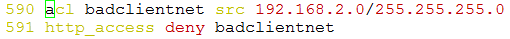acl clientnet1 src 192.168.2.0/255.255.255.0