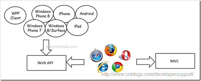 你可能会觉得Web API 与MVC很类似,他们有哪些不同之处呢?先上图,这就是他们最大的不同之处。