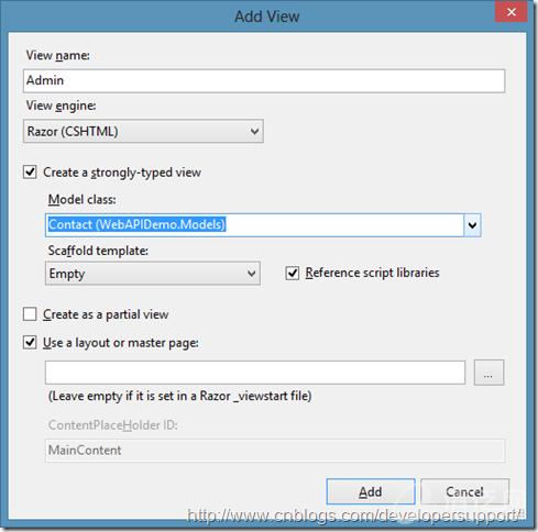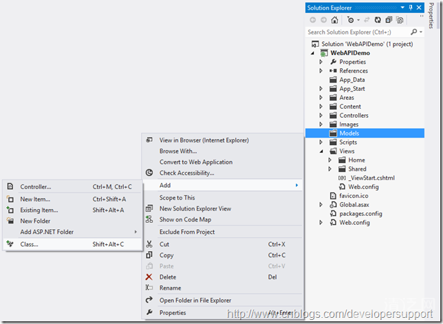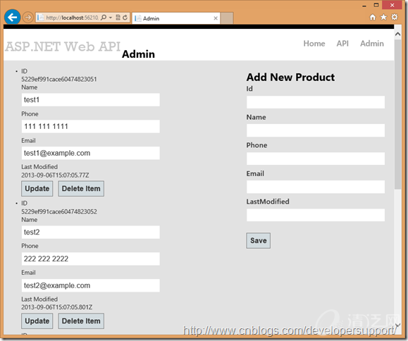 ASP.NET网站上有很多简单的Web API实例,看看贴图和实例代码你就明白怎么用了。这里我们通过一个稍微复杂一点的实例来展示下Web API的功能。