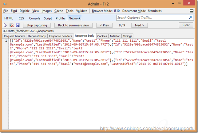 Action Http verb URI Get contact list GET /api/contacts Get filtered contacts GET /api/contacts?$top=2 Get contact by ID GET /api/contacts/id Create new contact POST /api/contacts Update a contact PUT /api/contacts/id Delete a contact DELETE /api/contacts/id准备工作