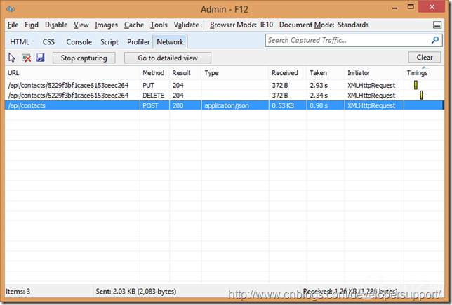 接下来我们修改,删除,又添加了一条记录,可以看到使用了不同的http method。